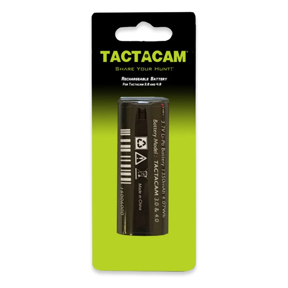 Rechargeable Battery for Tactacam 5.0, Fish-I, 4.0 and Solo Cameras provides up to 2.5 hours of recording for your Tactacam HD Camera. 3.7V Li-Po Battery 1350mAh 4.07Wh Battery Model: LBAT4